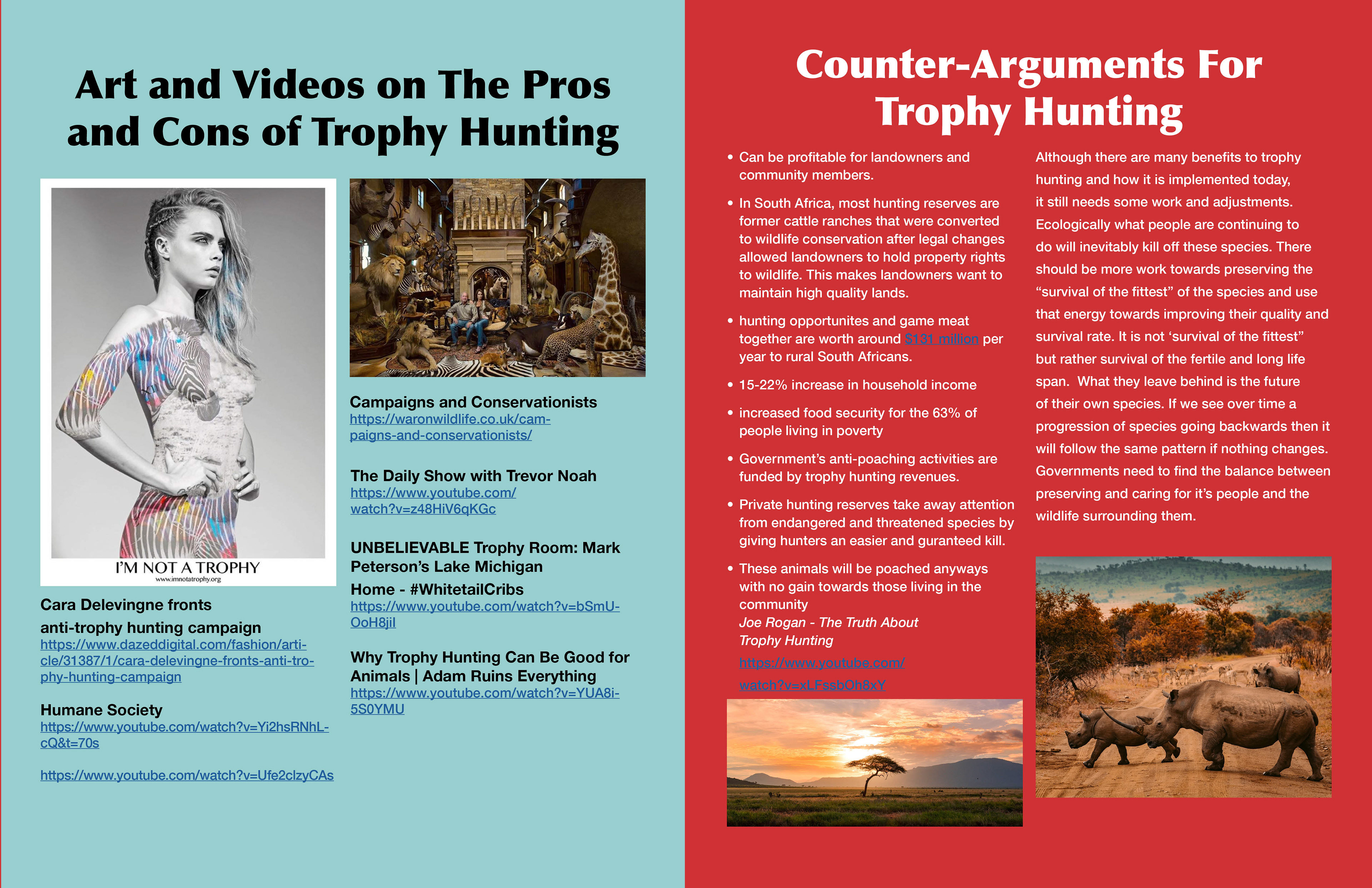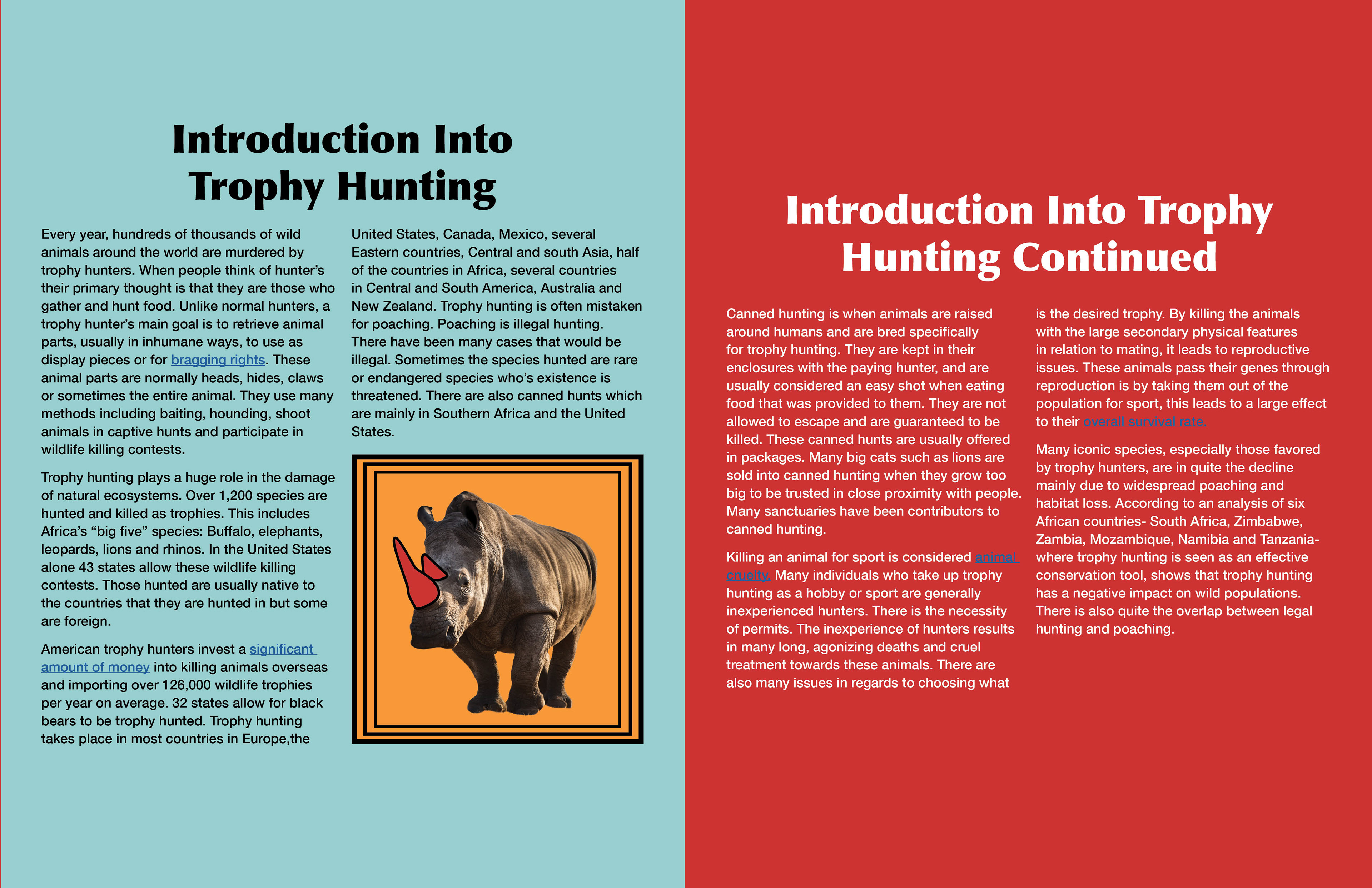 Toolkit on Trophy Hunting for a Global Ethics class. Projected included design, layout and copy writing. All done in InDesign. Printable for booklet style.